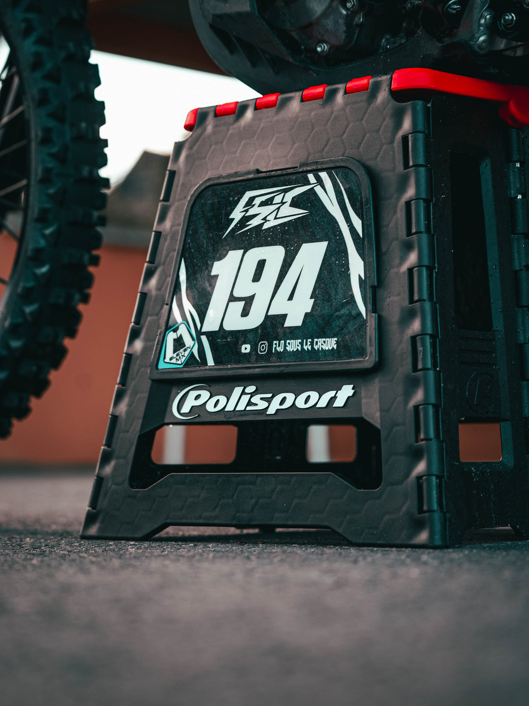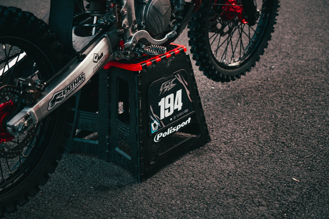 Diseño compacto, fácil de transportar, soporta 250 kg, superficie antideslizante, oficial FIM MX.