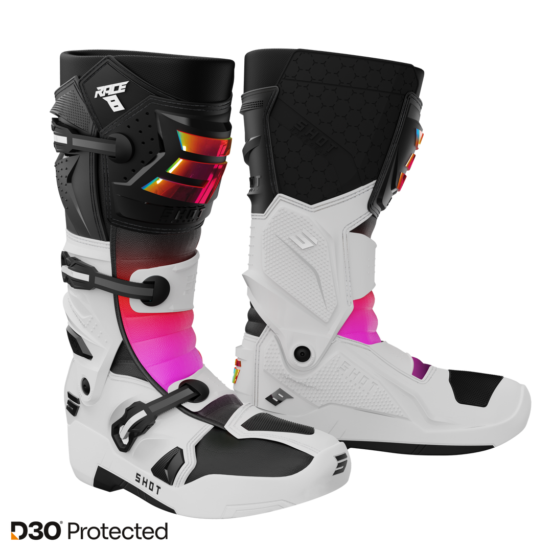 Fundada en 1993, Shot Race Gear es una de las marcas líderes en Europa. Con una gama completa de equipos especializados para motocross y todoterreno, SHOT ofrece una amplia gama de productos que se adaptan a todos los niveles, desde el piloto aficionado hasta el profesional.