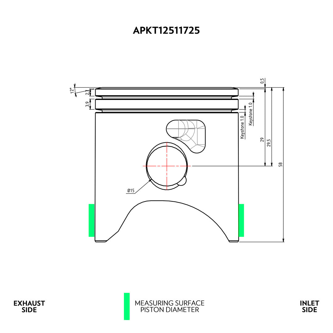 El Pistón VHM 12º Top con 2 segmentos está desarrollado para maximizar el rendimiento en motores 2T KTM SX 125, Husqvarna TC 125 y GasGas MC 125. Diseñado para trabajar junto con culatin e culata VHM 12°.